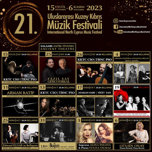 Festivalin finalinde ise dünyaca ünlü piyanist TC Devlet Sanatçısı Gülsin Onay 6 Kasım’da Bellapais Manastırı’nda sunacağı piyano resitali ile sahne alarak festivalin kapanış konserine imza atacak.