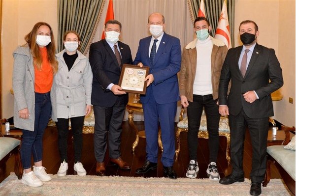 Cumhurbaşkanı Ersin Tatar, KKTC Futbol Tenisi Federasyonu Başkanı Şevket Songur, antrenör ve sporcularını kabul etti.
