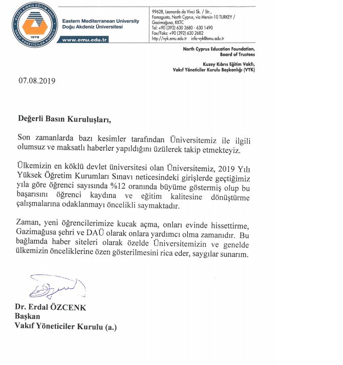 DAÜ VYK Başkanı Dr. Erdal Özcenk basında çıkan bazı haberlerle ilgili açıklama yaptı.
