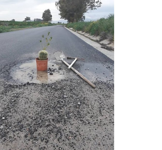 Paşaköy-Lefkoşa karayolunda yağmurun da etkisiyle içi suyla dolan çukurlara çiçek eken vatandaşlar, yıllardır aynı sıkıntıyı yaşadıklarını anlattılar.