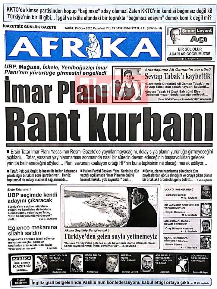 GAZETE MANŞETLERİ 13 OCAK 2020 PAZARTESİ