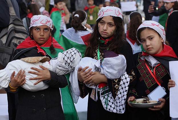 GAZZE Gazze'deki BM Filistinli Mültecilere Yardım Kuruluşu (UNRWA) merkezi önünde "İnsanlık mezarlığı" sloganıyla düzenlenen gösteriye, Filistinli çocukların yanı sıra siyasi şahsiyetler de katıldı. Kampta yaşanan insani dramı protesto eden dövizler taşıyan göstericiler, "Bugün Yermuk, yarın neresi?" sloganları attı.Eyleme katılan Filistinli çocukların, üzerinde "Açım" ve "bize yardım edin" şeklinde yazıların bulunduğu ekmek ve tabaklar taşıması dikkati çekti.Gösteride Yermuk Mülteci Kampı'nda yaşanan dramın Suriye'de Filistinlilerin yaşadığı diğer kamplara da sıçrayabileceğine dikkati çekmek için kampların isimlerinin yazılı olduğu "maket mezarlar" dikkati çekti.Yermuk Mülteci Kampı'yla dayanışma gençlik grupları koordinatörü Neda Udvan, "Düzenlediğimiz bu gösteriyle dünyaya mesajımızı iletmek istiyoruz. Ablukanın kaldırılmasını ve acilen yardımların ulaştırılmasını talep ediyoruz. Uluslararası kuruluşlar, insan hakları örgütleri ve Kızılhaç Filistinlilerin kurtarılması için acilen harekete geçmeli" dedi.Suriye'de rejim güçlerinin abluka altında tuttuğuYermuk Mülteci Kampı'nda, aralarında çocuk ve yaşlıların olduğu 51 kişinin açlıktan öldüğü belirtilmişti.Kampta açlıkla mücadele eden Filistinliler için yapılan yardım çağrılarının ardından, gıda malzemesi taşıyan BM Filistinli Mültecilere Yardım Kuruluşu'na (UNRWA) bağlı ekiplerin dün kampa girdiği bildirilmişti. Muhabirler: Yaser Albanna / Safiye Karabacak