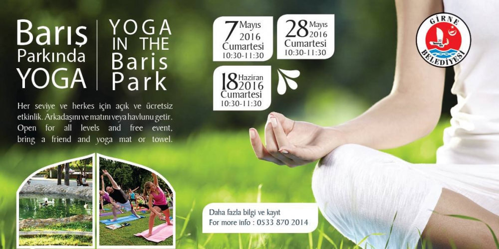 Etkinlik, 28 Mayıs 2016 Cumartesi ve 18 Haziran 2016 Cumartesi saat 10:30-11:30 saatlerinde halka açık olarak gerçekleştirilecek. Girne Belediyesi’nden verilen bilgide, yoga etkinliği