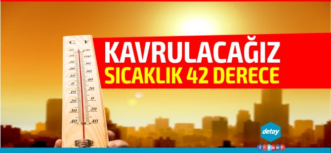 Hava sıcaklığı 42 dereceyi bulacak. Hava sıcaklığı önümüzdeki günlerde de iç kesimlerde 39-42, sahillerde ise 34-37 derece dolaylarında seyredecek.
