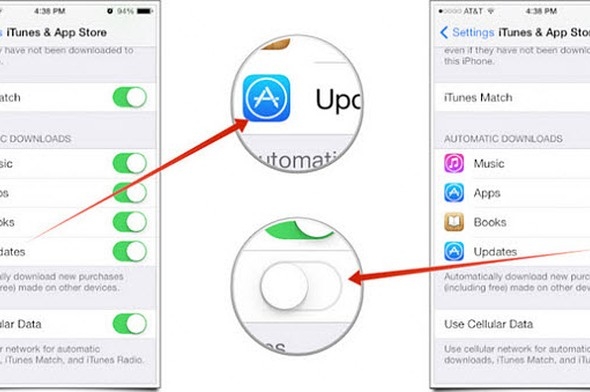 Otomatik güncelleştirmeleri kapatın. Sürekli arkaplanda uygulama güncelleştirmeye çalışan bu özellik de iPhone'ları yavaşlattığından Ayarlar>iTunes & Uygulama Mağazası> Otomatik Güncellemeler bölümündeki butonu pasifize edin.