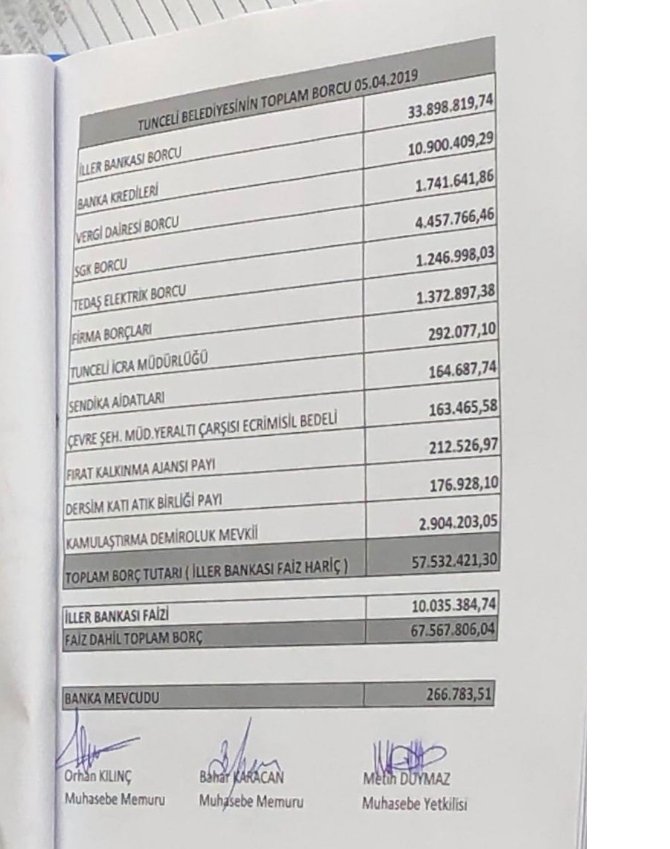 KOMÜNİST BAŞKAN AÇIKLADI.. TUNCELİ BELEDİYESİ'NDE 68 MİLYON TL BORÇ