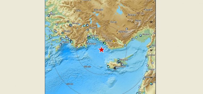 Antalya'nın Alanya ilçesi açıklarında 5.5 büyüklüğünde bir deprem meydana geldi. Depremin merkez üssü, Alanya ilçesine 61 kilometre mesafede.
