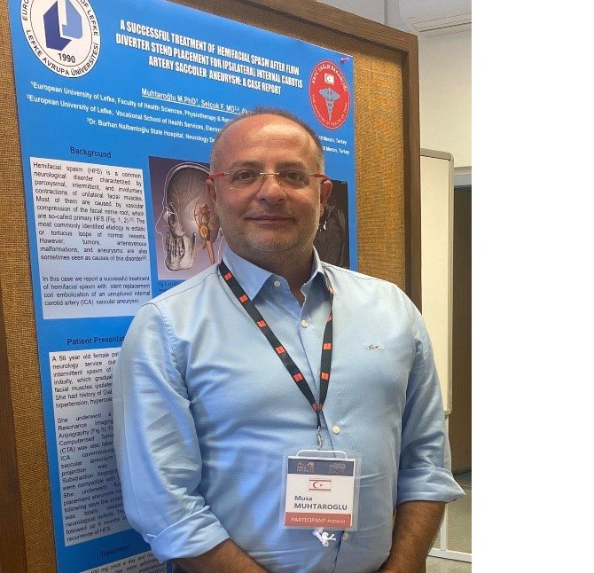 Muhtaroğlu kongrede, “Kuzey Kıbrıs'ta İzole Pons Enfarktüsünün Sıklığı ve Anatomik Paternleri” (The Incidence And Anatomic Pattern Of Isolated Pons Infarct in Northern Cyprus: A Single-Centered Retrospective Study) isimli sözlü çalışmasını ve “İpsilateral İnternal Karotid Arter Sakküler Anevrizmada Akış Yönlendirici Stent Yerleştirilmesi Sonrası Hemifasyal Spazmın Başarılı Tedavisi Olgusu (A Successful Treatment of Hemifacial Spasm After Flow Diverter Stend Placement for Ipsilateral Internal Carotis Artery Sacculer Aneurysm: A Case Report) adlı çalışmayı ise poster sunumu olarak tebliğ etti.
