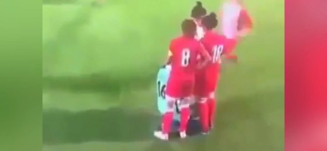 MAÇTA BAŞÖRTÜSÜ AÇILAN KADIN FUTBOLCUNUN ETRAFINDA RAKİP SPORCULAR ÇEMBER OLDU