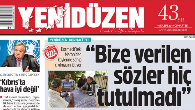 Yenidüzen Gazetesi 16 Kasım 2019 Cumartesi tarihli sayısında "Bize verilen sözler hiç tutulmadı" manşeti ile çıktı.