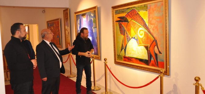 Yakın Doğu Üniversitesi'nin 38 Sanatçısının 103 Eserinden oluşan "Cumhuriyet Sergisi”ni gezen Milli Eğitim ve Kültür Bakanı Cemal G. Özyiğit'e eserler hakkında bilgiler verildi.