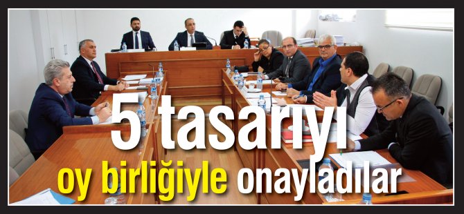5 tasarıyı oy birliğiyle onayladılarCumhuriyet Meclisi, Ekonomi, Maliye, Bütçe ve Plan Komitesi bugünkü toplantısında görüştüğü 5 yasa tasarısını onayladı.13 Şubat 2019 Çarşamba 15:05KIBRIS