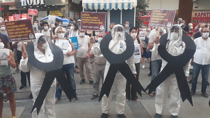 Sağlık emekçileri adına açıklama yapan İzmir Tabip Odası Başkanı Lütfi Çamlı, Covid-19 salgın sürecinin bilimsel yöntem, şeffaf veri ve ilgili tüm kesimlerin katılımı ile etkin ve koordineli bir anlayışla yönetilmesini talep ettiklerini belirterek, “Sağlık Bakanlığını, başta TTB olmak üzere bütün sağlık meslek odaları, sağlık sendika ve dernekleriyle birlikte “Covid-19 işbirliği ve ortak çalışma meclisi oluşturulmasını talep ediyoruz” dedi.