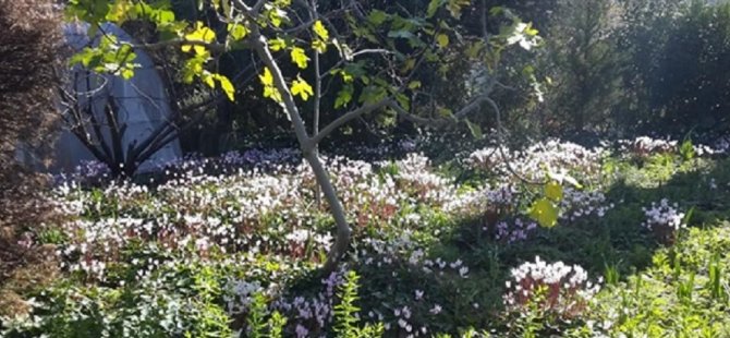 Bahçedeki çiçek ve bitkiler arasında, Siklamen, Medoş Lalesi, Silene, Hilarion Lahanası, Arabis cypria, Kırmızı Alıç, Kıbrıs Akçe Ağacı ile Tesbih Ağacı bulunuyor.