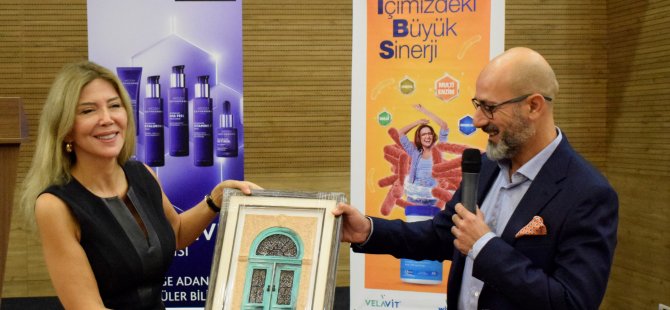 Eczacıların yoğun ilgi gösterdiği tanıtım toplantısında KKTC'de de oldukça fazla takipçisi bulunan Biyokimya Uzmanı Dr. Ayşegül Çoruhlu'ya eczacılara yaptığı "Kolostrumun Bağışıklık Sistemine Olumlu Etkileri" konulu sunumun ardından Serakıncı Ecza ltd Genel Müdürü Salahi Serakıncı tarafından hediye takdim edildi.