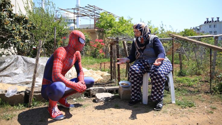 ANTALYALI 'ÖRÜMCEK ADAM' KORONADA İNSANLARA YARDIM EDİYOR