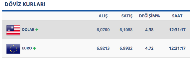 Dolar kuru bu sabah 5,80 seviyesinden güne başladı. ABD'nin açıklamaları sonrası tansiyonu yükselen dolar Türkiye'den yapılan açıklamaların ardından saat 12.00'de 6 lirayı gören dolar saat 22.25'te 6,20 seviyesine yükseldi. 6,65 civarında hareket eden euro ise 7,09 seviyesine yükseldi. İşte dolar ve eurodaki anlık durum;