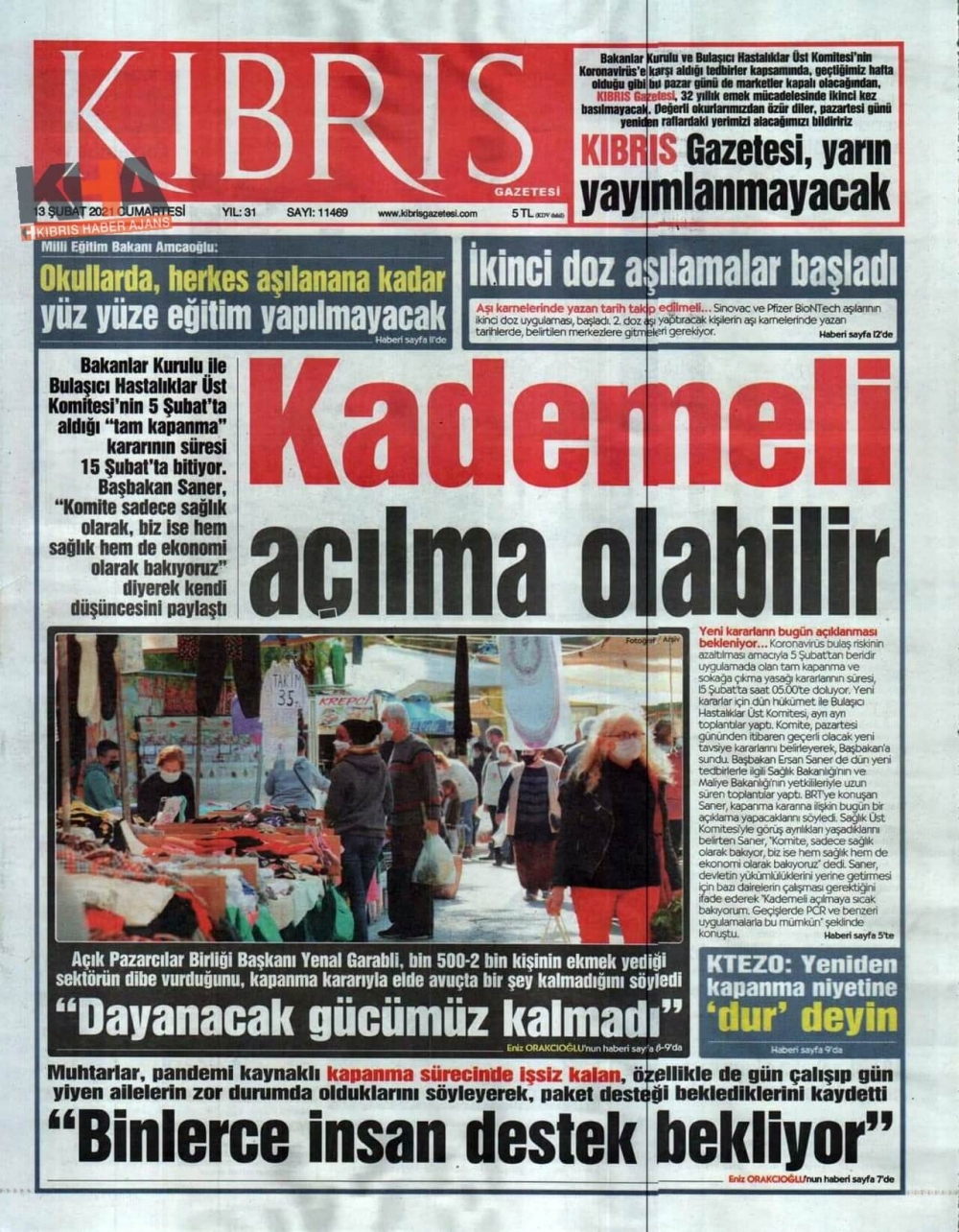 KKTC'DE BUGÜN GAZETELER NE MANŞET ATTI? (13 ŞUBAT 2021)