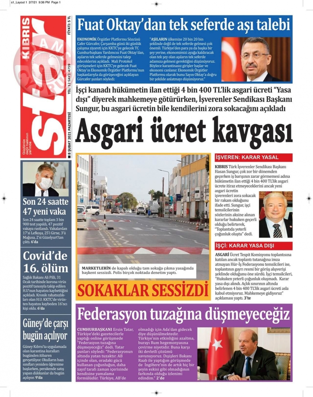 KKTC'DE GAZETELER BUGÜN NE MANŞET ATTI? (08 ŞUBAT 2021)