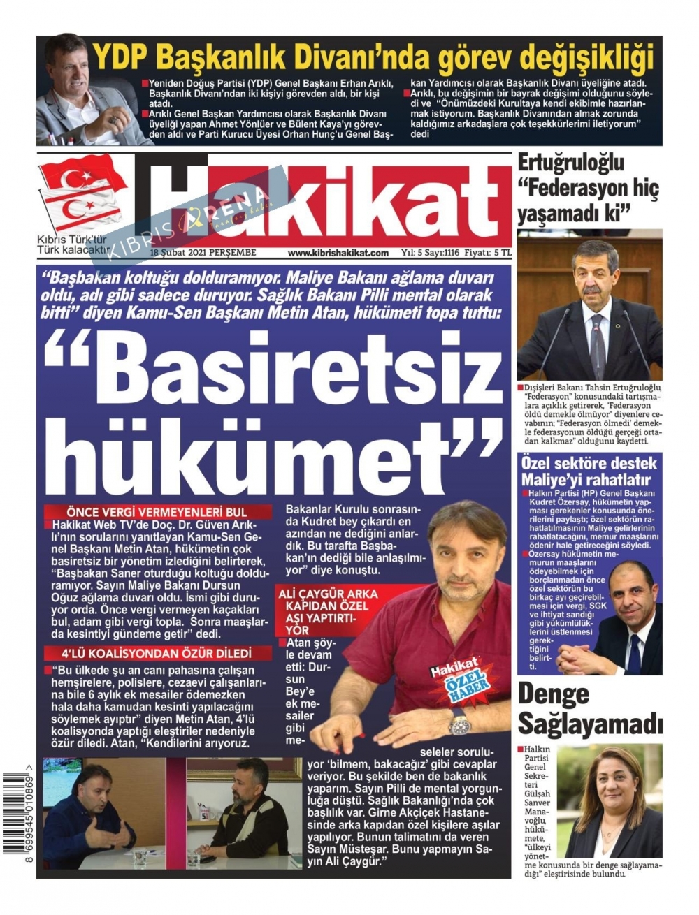 KKTC'DE GAZETELER BUGÜN NE MANŞET ATTI? (18 ŞUBAT 2021)