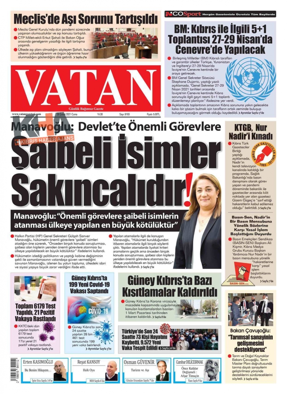 KKTC'DE GAZETELER BUGÜN NE MANŞET ATTI? (26 ŞUBAT 2021)