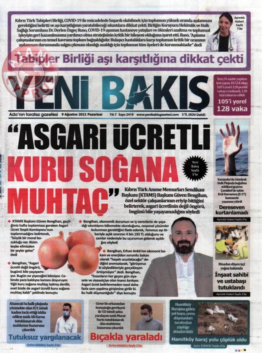 KKTC'DE GAZETELER BUGÜN NE MANŞET ATTI? (9 AĞUSTOS 2021)