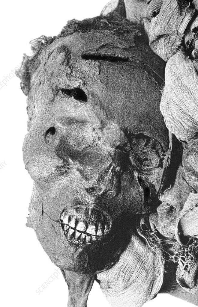 Firavun, alnına yukarıdan bir balta veya kılıç darbesiyle çıkacak 2,75 inç uzunluğunda (7 santimetre) bir kesiğe sahipti. Bu yara tek başına ölümcül nitelikte.