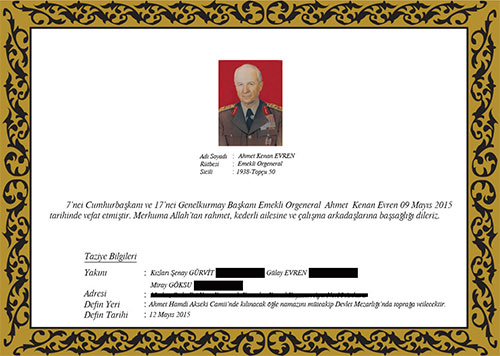 TSK, KENAN EVREN'İN KIZLARININ TELEFONLARINI YAYIMLADI