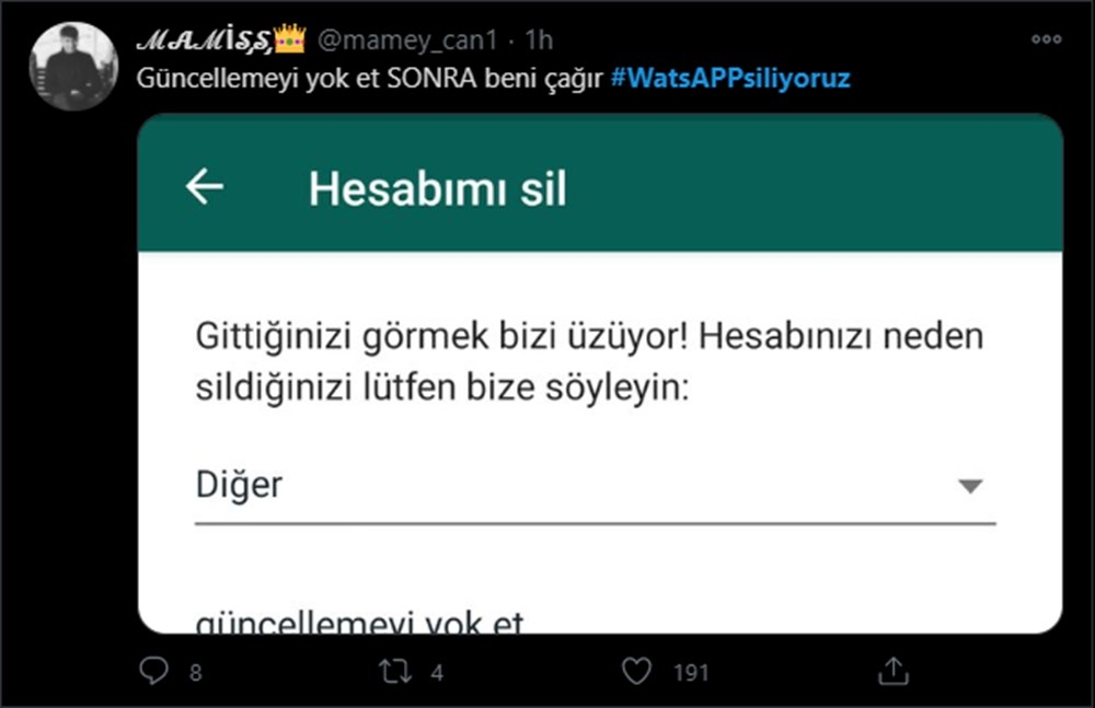 #WHATSAPPSİLİYORUZ ETİKETİNE YAPILAN YORUMLAR